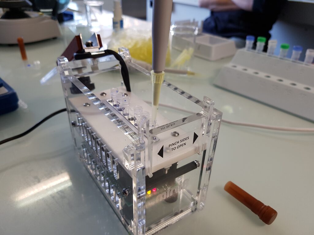 Sylvain Gaignoux et Etienne Jacquart (Sordalab) sont venus faire une démo de leur kit PCR/électrophorèse, le 16 janvier, au lycée Jean-Marc Boivin .